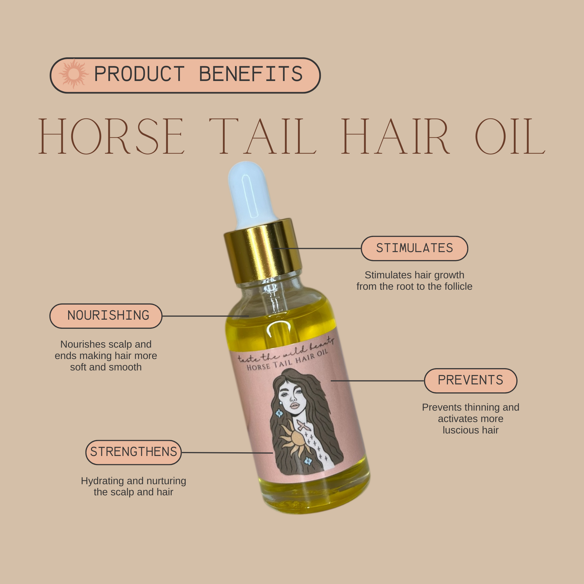 Maximize hair growth and activate thickening for longer and more luscious hair using our Horse Tail Hair Oil! For best results, use before each wash. Sold in a 1 oz. glass dropper bottle.